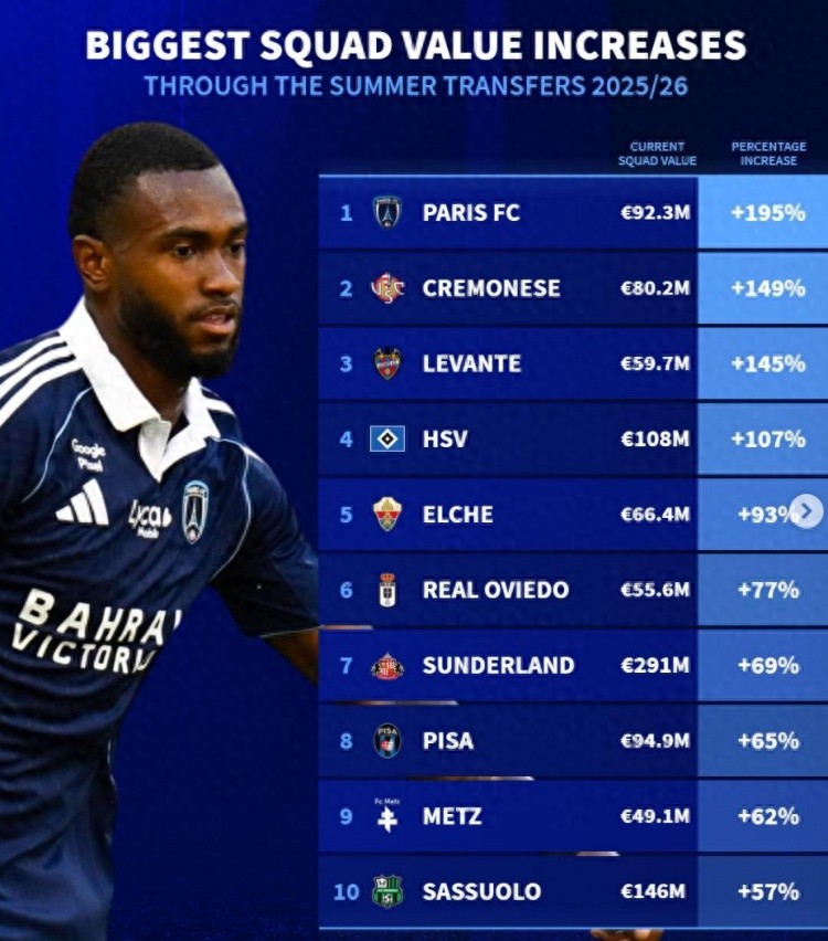 1. Paris fc, 92,3 triệu, +195%