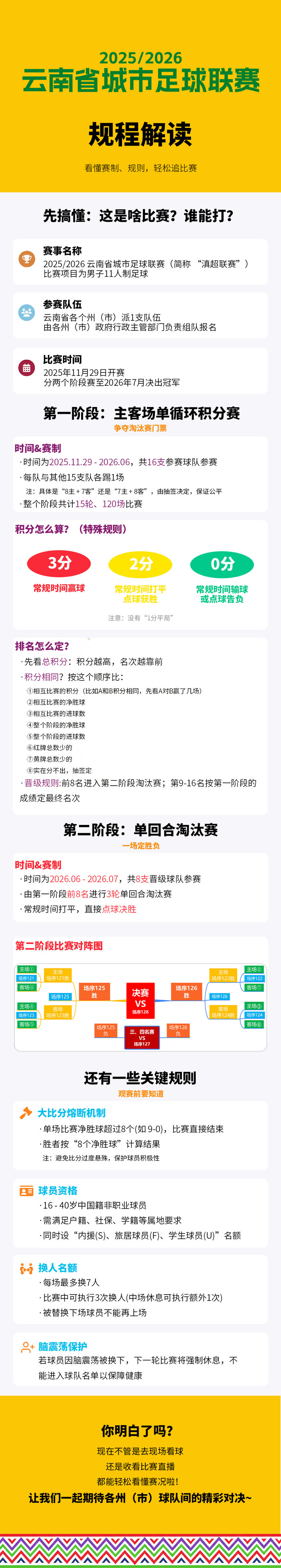 Giải bóng đá đô thị tỉnh Vân Nam 2025/2026 (gọi tắt là "Dian Super League") sẽ được tổ chức ở nhiều bang và thành phố thuộc tỉnh Vân Nam từ ngày 29 tháng 11 năm 2025 đến tháng 7 năm 2026. Giải đấu này quy tụ 16 đội đến từ 16 bang (thành phố) của tỉnh Vân Nam, với tổng cộng 120 trận đấu kéo dài 8 tháng. Trận khai mạc sẽ bắt đầu tại Trung tâm thể thao cao nguyên Yuxi vào ngày 29 tháng 11. Từ những ngọn núi phủ tuyết cao nguyên đến rừng mưa nhiệt đới, từ bờ hẻm núi đến vùng nông thôn rộng lớn, 16 sân nhà và 16 đội đã tạo nên cơn sốt bóng đá ở Vân Nam! Đây là loại trò chơi gì? Ai có thể tham gia? Các hình thức và quy tắc cạnh tranh như thế nào? Hãy theo dõi biểu đồ củaXinhuanet để nắm rõ lịch thi đấu và theo dõi trận đấu một cách dễ dàng nhé! (Luo Chunming và Ding Ning)