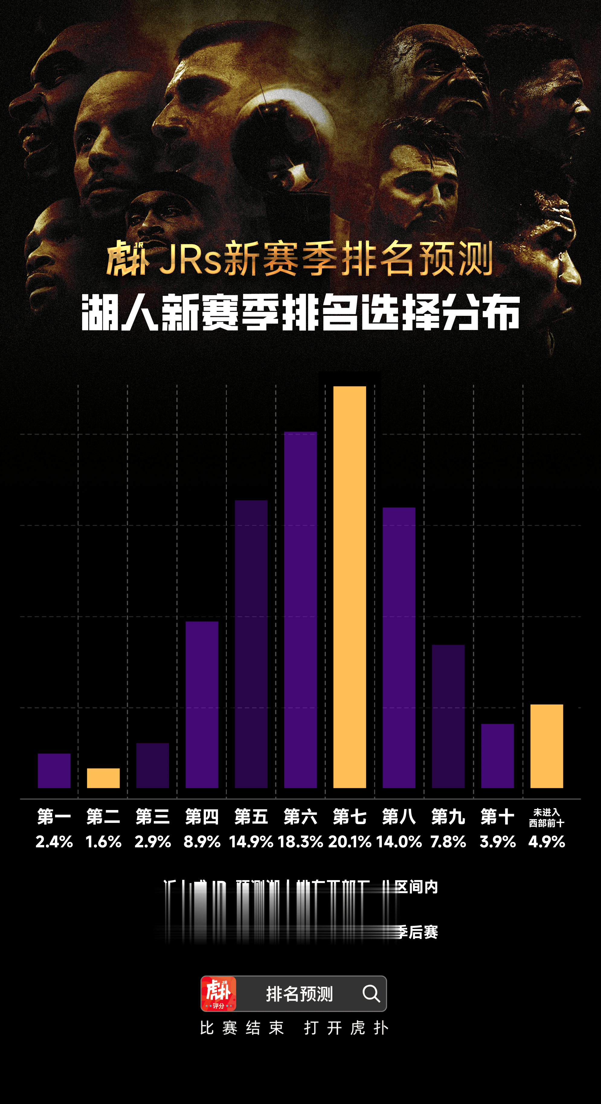 Trong số đó, gần 70% JR dự đoán rằng Lakers sẽ xếp từ thứ năm đến thứ tám tại Western Conference. Hầu hết mọi người dự đoán rằng họ sẽ xếp thứ bảy tại Western Conference (20,1%), tiếp theo là 18,3% JRs dự đoán rằng Lakers sẽ xếp thứ sáu tại Western Conference.