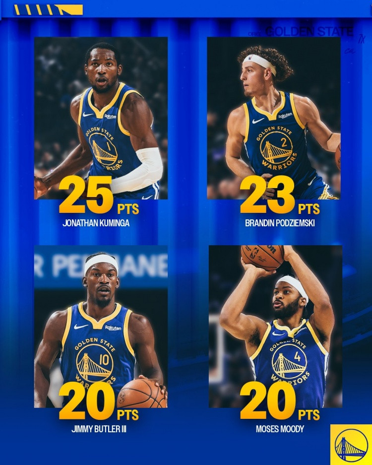 Hoa nở tứ phía! Warriors đăng poster của Kuminga& Podger& Quản gia& Tâm trạng và bốn người chơi trong cùng một lĩnh vực với hơn 20 điểm!