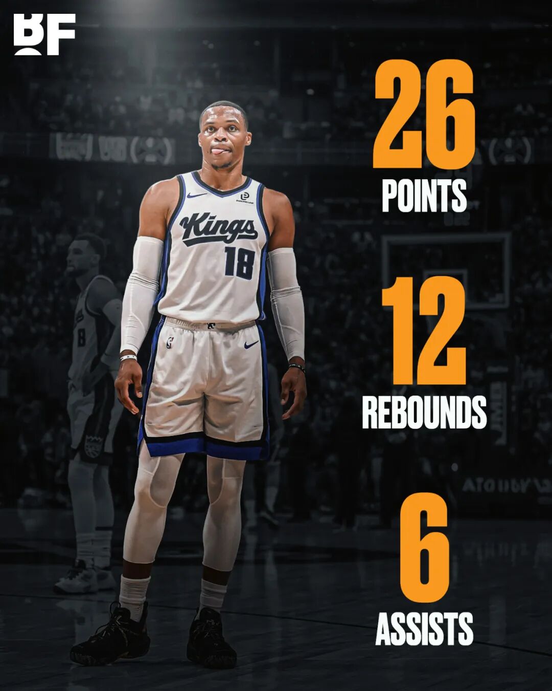 Cho đến nay, Westbrook đã chơi 7 trận với Kings, ghi trung bình 13,9 điểm, 5,9 rebounds, 5,0 hỗ trợ và 1,4 lần đánh cắp mỗi trận. Tỷ lệ bắn ba lần của anh ấy lần lượt là 43,2%/39,4%/70,0%.