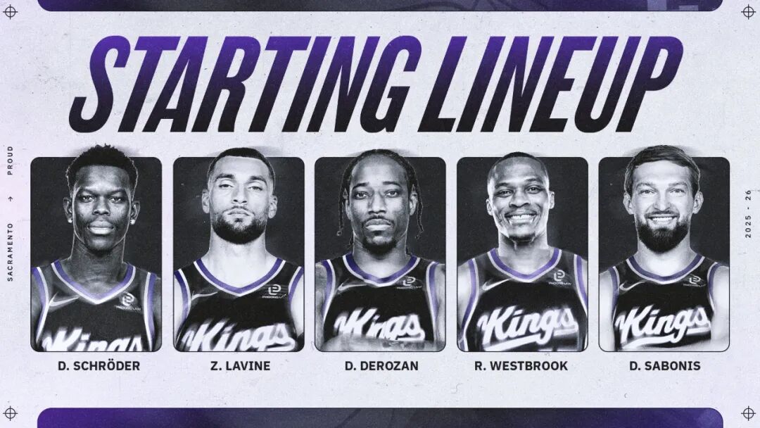 Vì vậy, bạn sẽ thấy những người khởi đầu được các Vua cử đến trong trò chơi này là: Schroeder + LaVine + DeRozan + Westbrook + Sabonis - 1 tuyến trong và 4 vệ binh, bao gồm nhiều mắt xích phòng thủ yếu. Westbrook thay thế Keegan Murray trong đội hình này.